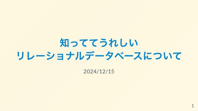 知っててうれしい リレーショナルデータベースについて 2024/12/15 1