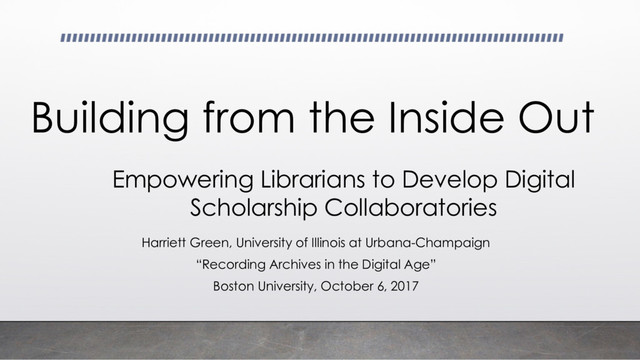 at Urbana-Champaign “Recording Archives in the Digital Age” Boston University, October 6, 2017 Empowering Librarians to Develop Digital Scholarship Collaboratories