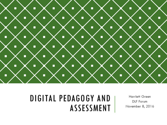 digital projects Content analysis of student sites + written responses Generate potential criteria for learning assessment rubric “Rubrics allow students to understand the expectations of their instructors. … They provide direct feedback to students about what they have learned and what they have yet to learn.” Oakleaf (2009) “‘Rubrics are texts that are visible signs of agreed upon values. They cannot contain all the nuances of the evaluation community’s values, but they do contain the central expressions of those values.’” Callison (2000) [email protected] @greenharr