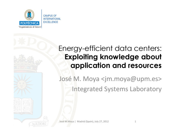 Presentation by Jose M. Moya at the IEEE Region 8 SB & GOLD Congress (25 – 29 July, 2012).