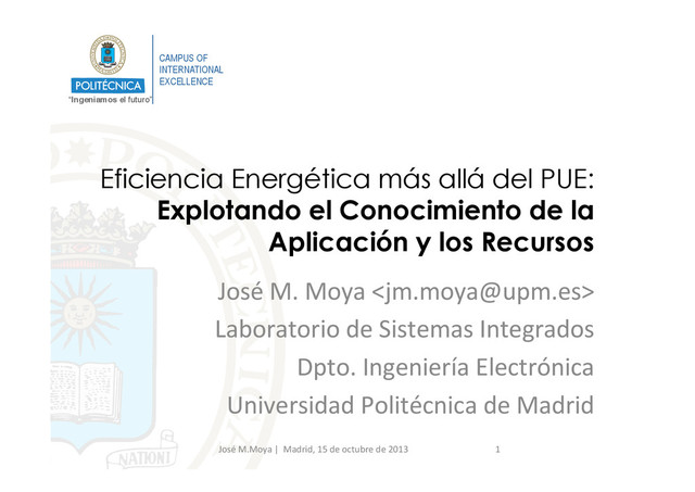 Speech title: Energy efficiency beyond PUE: exploiting knowledge about application and resources