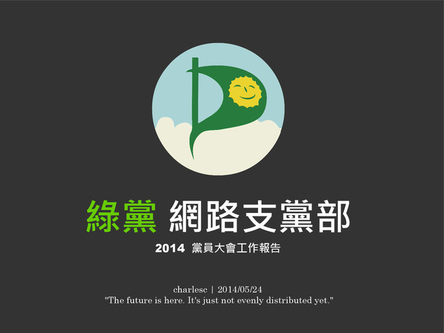 綠黨 網路支黨部 2014 黨員大會工作報告 charlesc | 2014/05/24 "The future is
