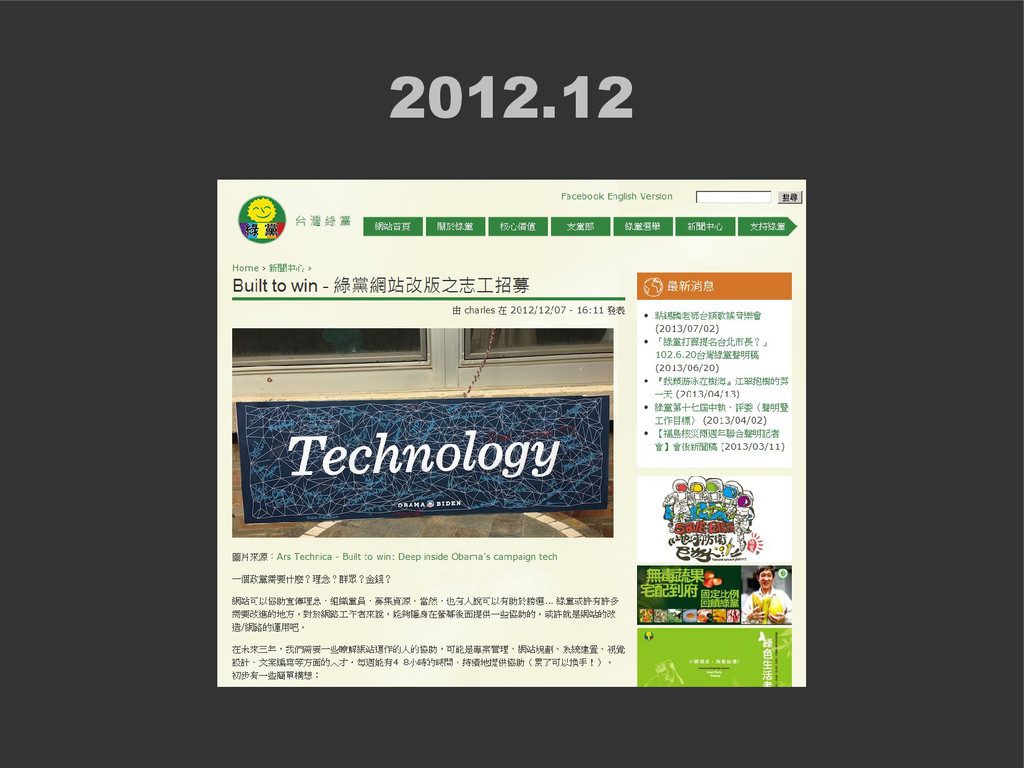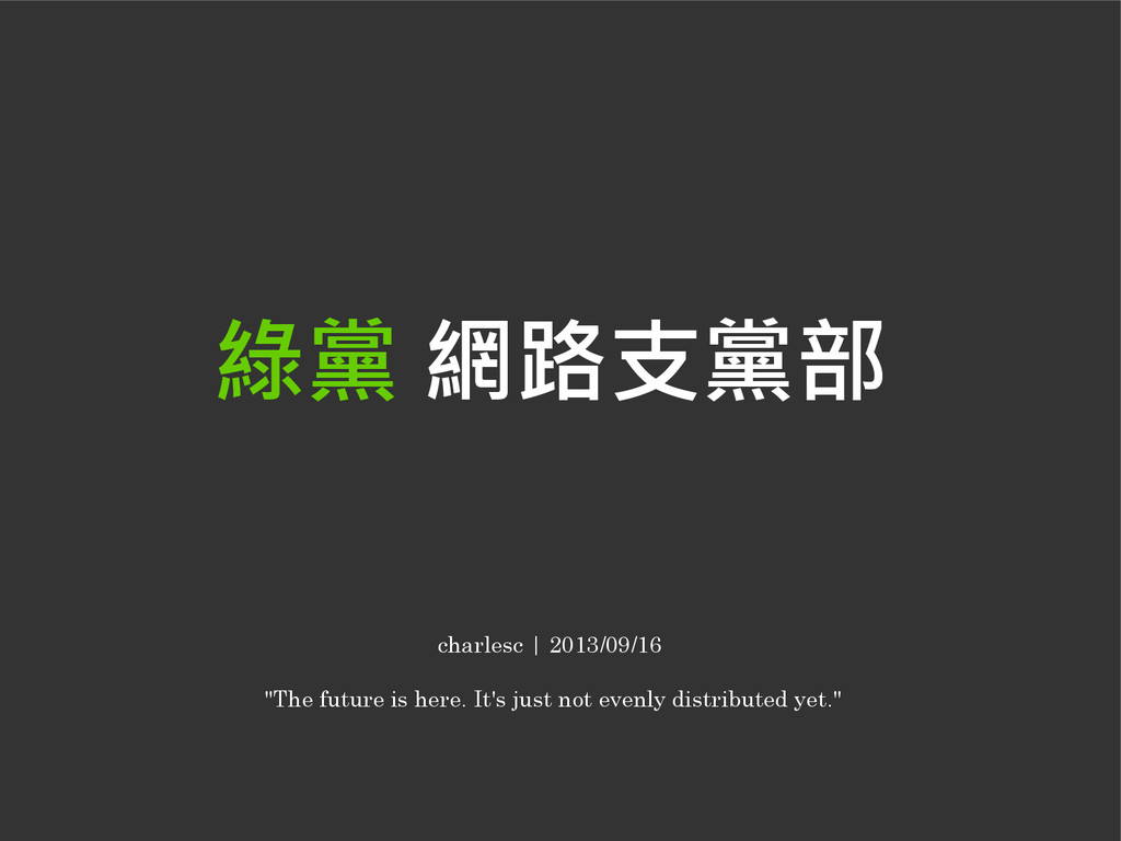 綠黨 網路支黨部 charlesc | 2013/09/16 "The future is here. It's