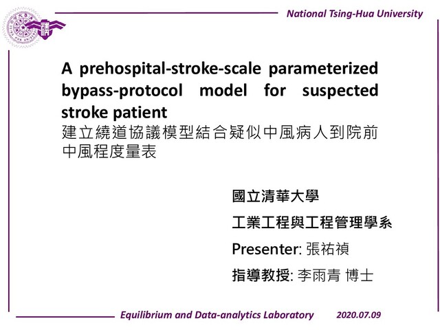 𝑈 (seconds) Administratio n time 𝐴 (seconds) Expected time for a patient to get the definitive treatment (seconds) from the model trial 1 trial 2 trial 3 trial 4 trial 5 900 2,790 7,027 7,022 7,028 7,025 7,026 7,027 420 1,410 7,025 7,022 7,028 7,024 7,026 7,026 The mean time (in sec.) for a patient to receive definitive treatment under the 5 different trials. (The probability measure is from Richards et al.) Threshold 𝑈 (seconds) Administratio n time 𝐴 (seconds) Expected time for a patient to get the definitive treatment (seconds) from the model trial 1 trial 2 trial 3 trial 4 trial 5 900 2,790 6,107 6,106 6,105 6,106 6,114 6,106 540 1,830 6,101 6,099 6,103 6,101 6,113 6,097 360 1,830 6,098 6,101 6,103 6,104 6,120 6,098 The mean time (in sec.) for a patient to receive definitive treatment under the 5 different trials. (The probability measure is from Scheitz et al.) Comparisons between actual time and expected time