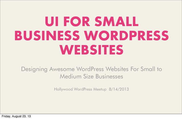 I’m Greg Douglas Principal of Premium Interactive Designer / Front-end Developer Organizer of Hollywood WordPress Meetup Designing for the web since 1999 @premiuminteract Friday, August 23, 13