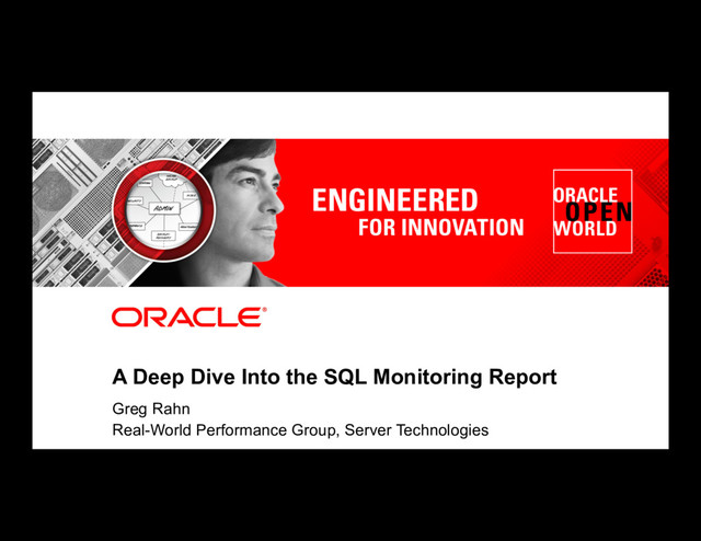 The SQL Monitoring Report was introduced in Oracle Database 11g and has become the single most used diagnostic report by the Oracle Real-World Performance Group and Oracle database development for SQL statement performance issues. This session will start with a technical overview of the SQL Monitoring Report and what metrics and information it provides. From there we'll deep dive into numerous examples from the field explaining how this report was used to diagnose and validate performance issues. There is a wealth of information in the SQL Monitoring Report and this session will provide the necessary knowledge to best leverage it.
