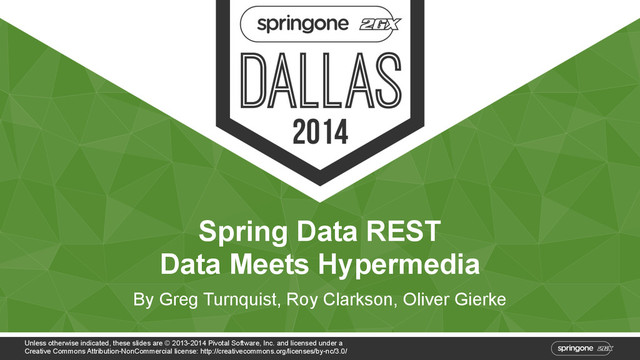 Inc. and licensed under a Creative Commons Attribution-NonCommercial license: http://creativecommons.org/licenses/by-nc/3.0/ Spring Data REST Data Meets Hypermedia By Greg Turnquist, Roy Clarkson, Oliver Gierke