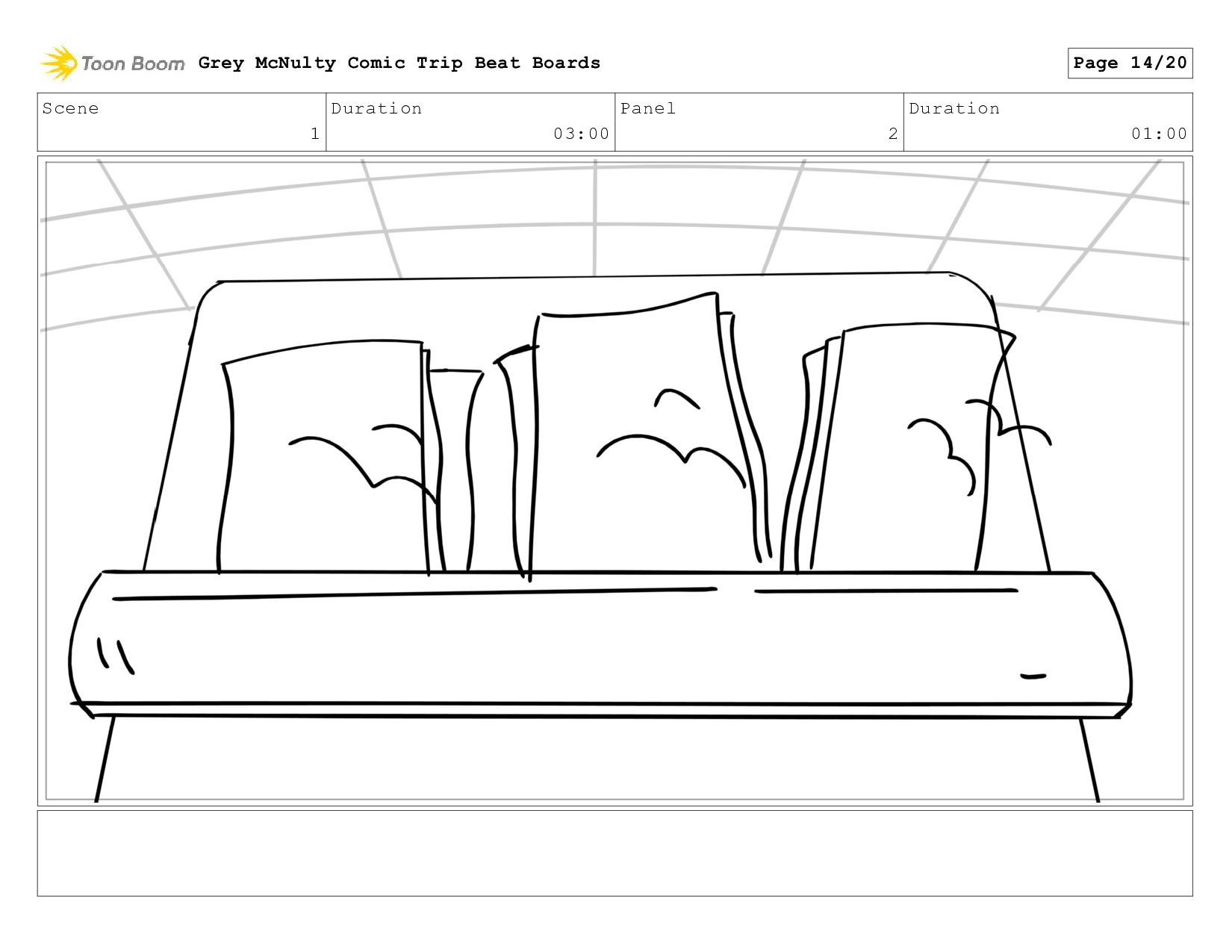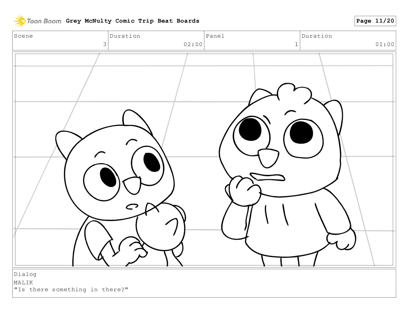 Scene 1 Duration 03:00 Panel 2 Duration 01:00 Grey McNulty