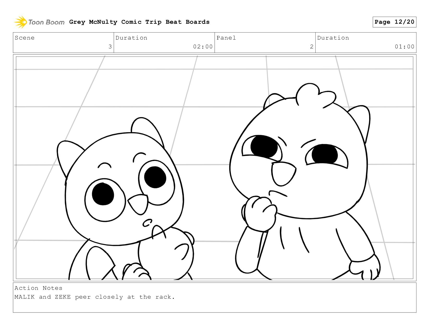 MALIK and ZEKE peer closely at the rack. Grey McNulty Comic Trip Beat Boards Page 12/20