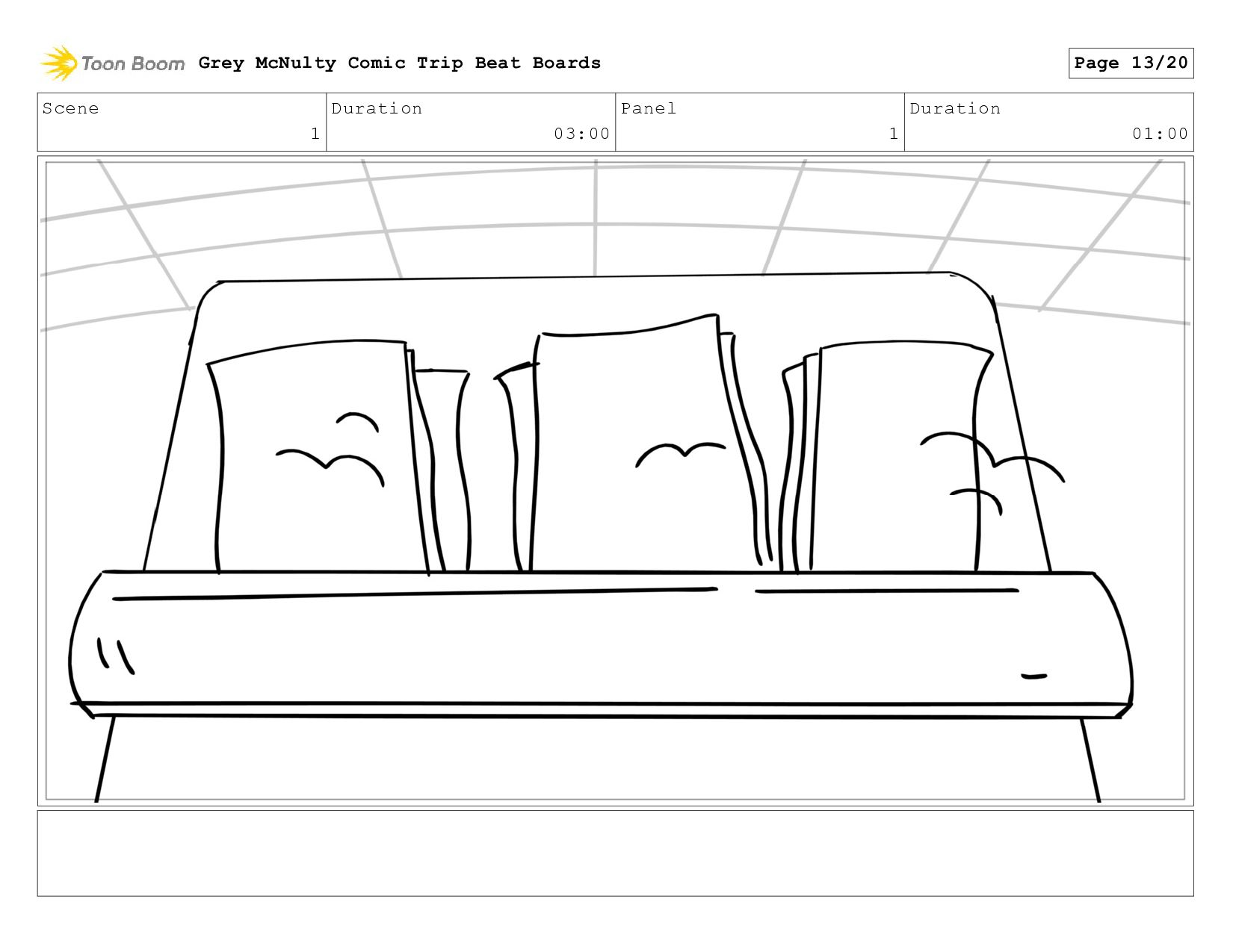Scene 1 Duration 03:00 Panel 1 Duration 01:00 Grey McNulty