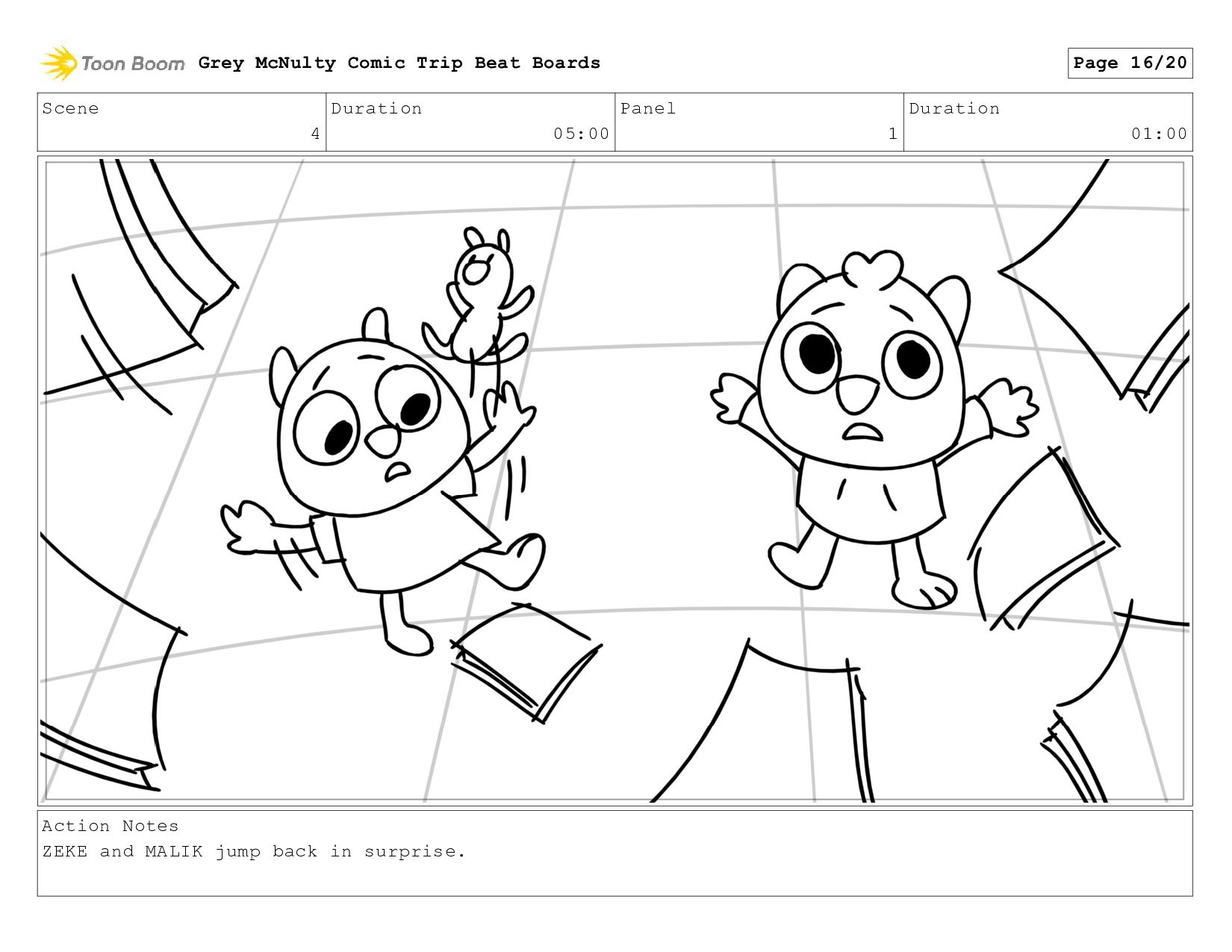 ZEKE and MALIK jump back in surprise. Grey McNulty Comic Trip Beat Boards Page 16/20