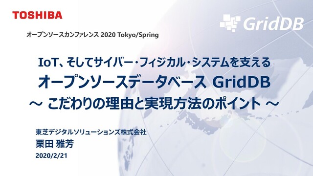 今回、なぜGridDBは、サイバー・フィジカル・システムの実現に必要な要件を満たしているのか? GridDBの概要と特長、特に、「データモデル」、「高速性」、「拡張性」、そして「可用性」にこだわる理由とその実現方法のポイントついて解説します。また、活用事例やオープンイノベーション活動などについても紹介します。