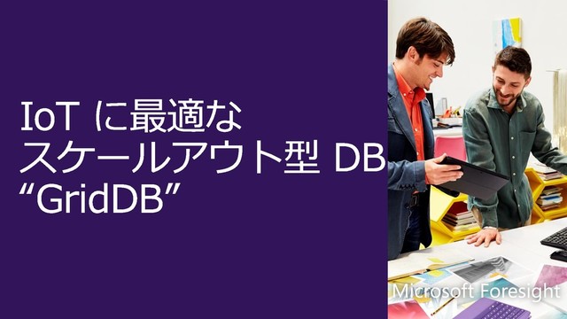 「Microsoft ForesightのBreakout Session「ビッグデータ / IoT 時代に求められる情報処理基盤とは?」の資料」 IoT に最適なスケールアウト型 DB “GridDB” 2016年9月6日(火)~7日(水)