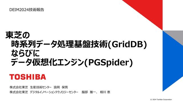 [T2-B-7-05] 【技術報告】東芝の時系列データ処理基盤技術(GridDB)ならびにデータ仮想化エンジン(PGSpider)