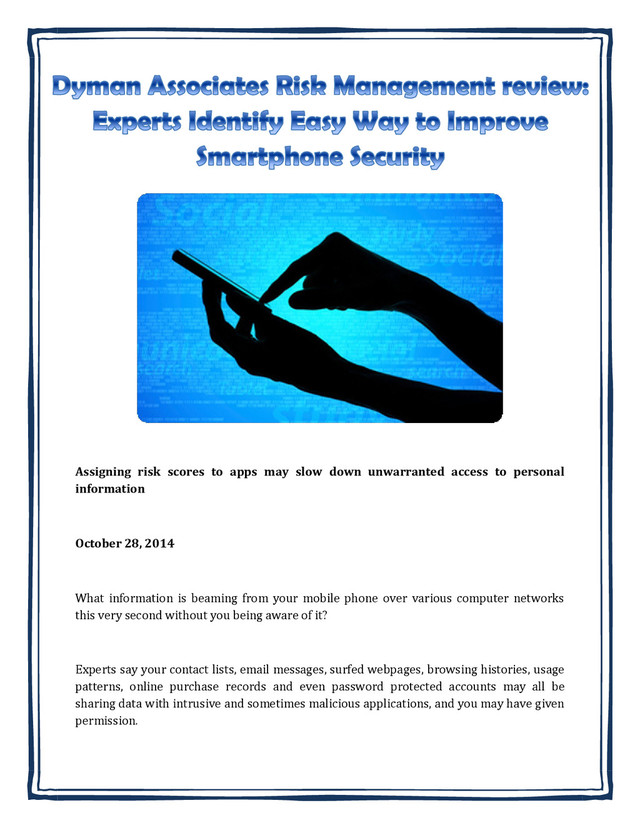"Although strong security measures( http://dymanassociatesprojects.tumblr.com/ ) are in place for most mobile systems," they write in a recent report inthe journal IEEE Transactions on Dependable and Secure Computing, "the area where these systems often fail is the reliance on the user to make decisions that impact the security of a device."