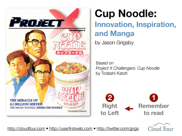 This presentation will feature artwork from the Eisner-award nominated Project X Challenger: Cup Noodle manga book.