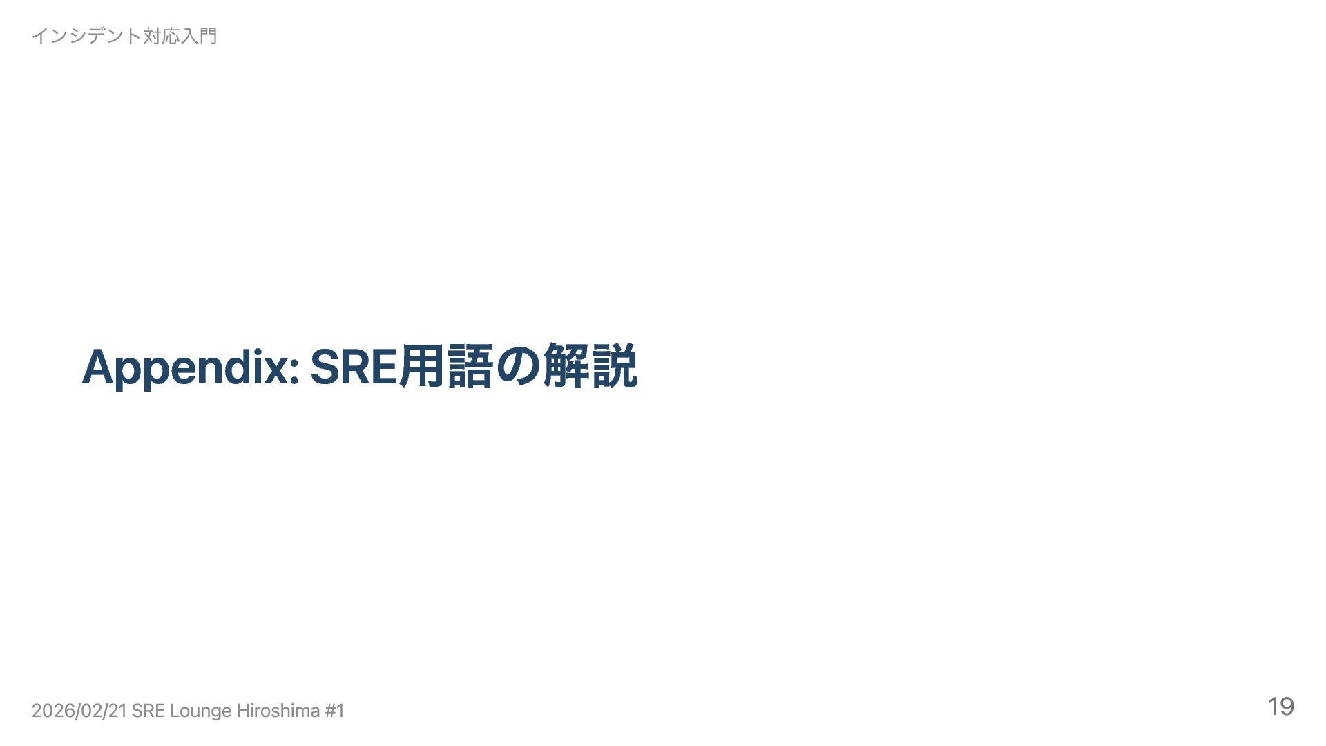 Appendix: SRE用語の解説 インシデント対応入門 2026/02/21 SRE Lounge Hiroshima #1 19