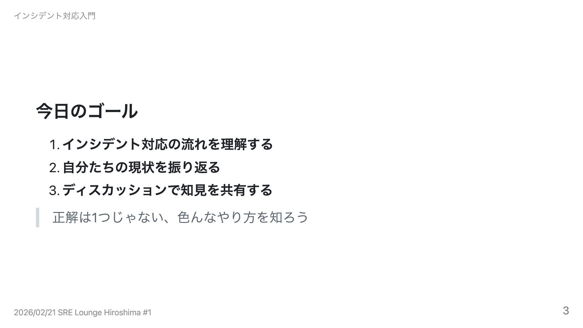インシデント対応入門 2026/02/21 SRE Lounge Hiroshima #1 4
