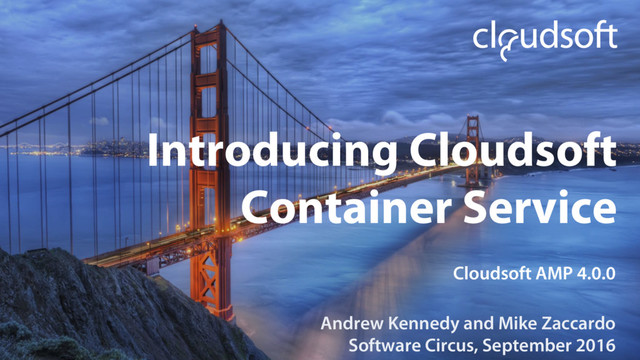 clusters. Production-ready infrastructure with TLS, high-availability and extensions like Flannel, Calico and Canal for networking. Can also connect to existing infrastructure provisioned and managed externally, by specifying appropriate API endpoints. Containerize applications by simply deploying blueprints to container-aware locations or build hybrid applications from virtual machines, containers and pods. @cloudsoft / @grkvlt / @itsmemikez #getamp4