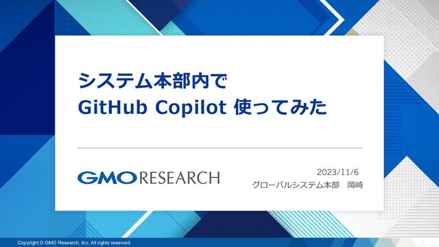 また漏洩することは「著作権法」「不正競争防⽌法」によって禁じられております。 This document and all information contained in this document are the legal property of GMO Research, Inc. Any distribution, copying, or disclosure of information contained in this document without the consent of GMO Research, Inc. is strictly forbidden by the Japanese Intellectual Property Rights Law and Fair Competition Law.