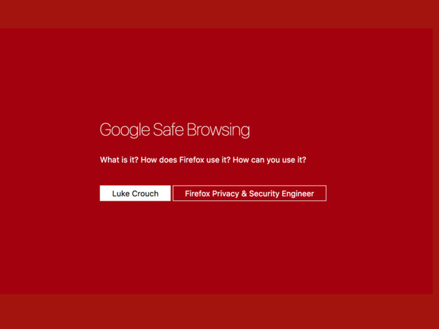 lists of urls • malware • other unwanted software • phishing / social engineering • It’s used by Android, Gmail, Ads, Search, Chrome, Firefox, Safari, Opera