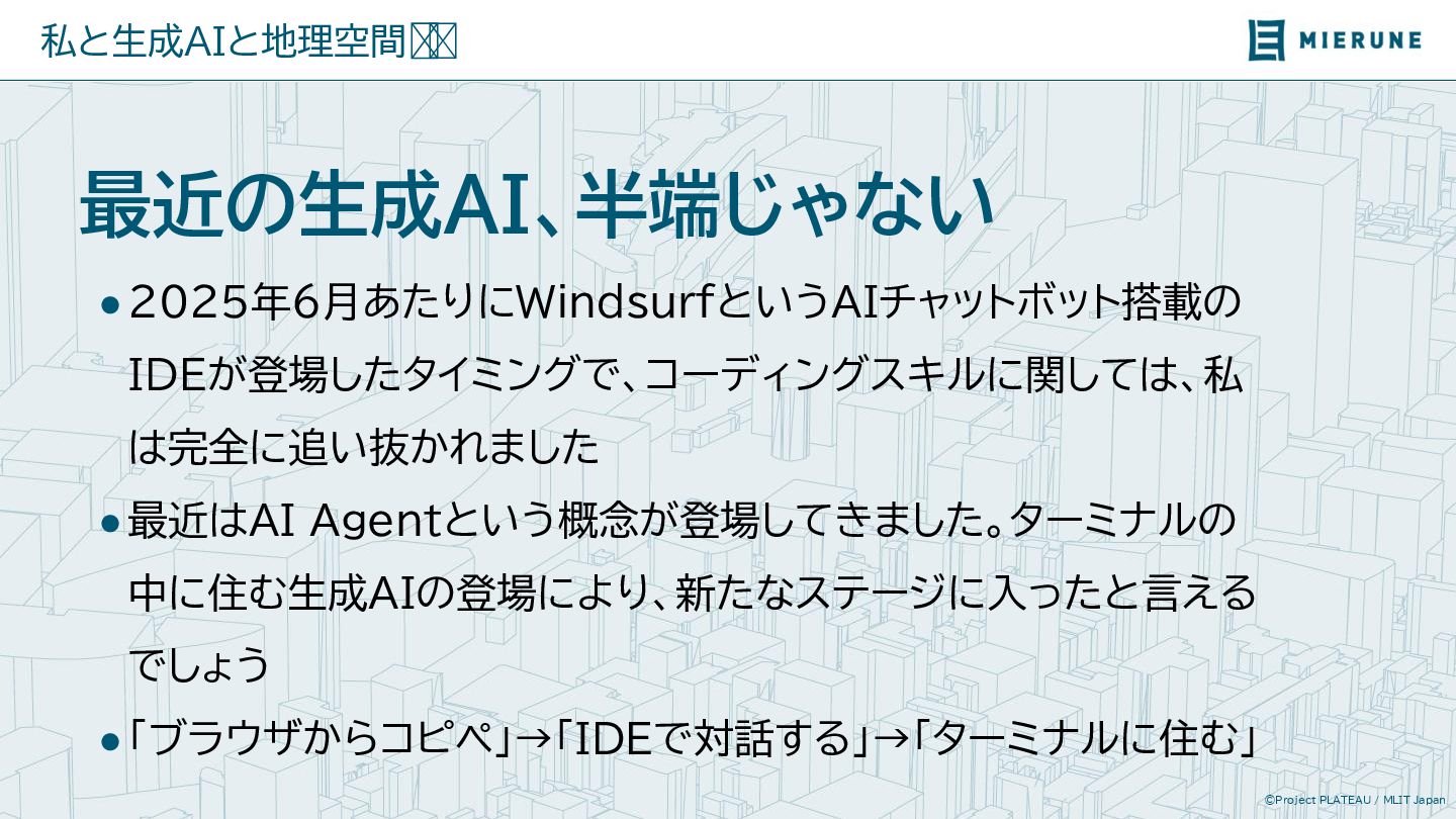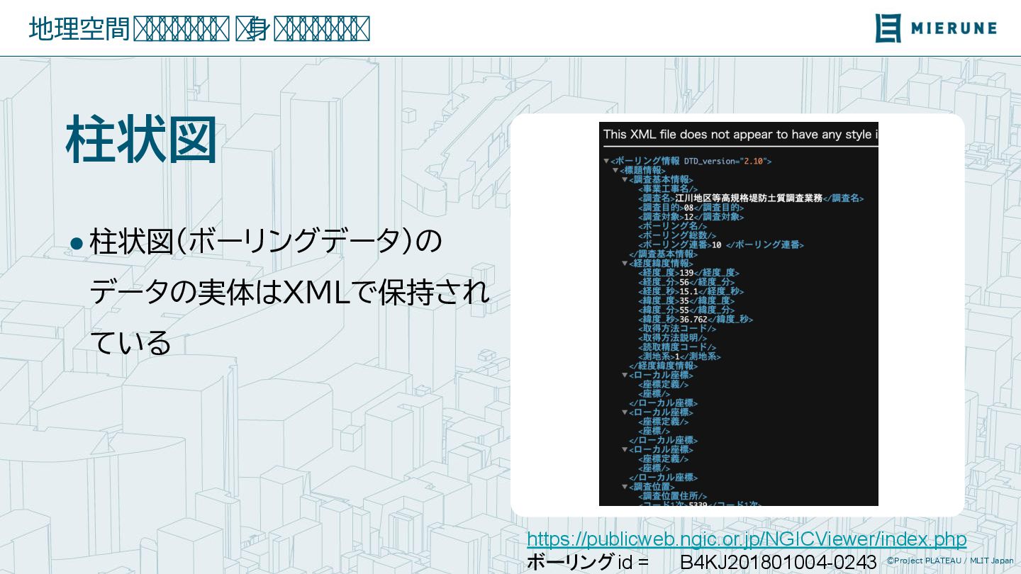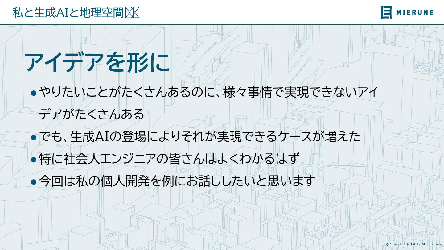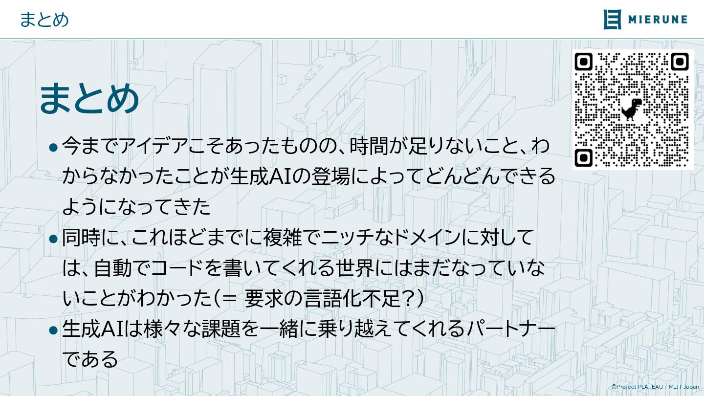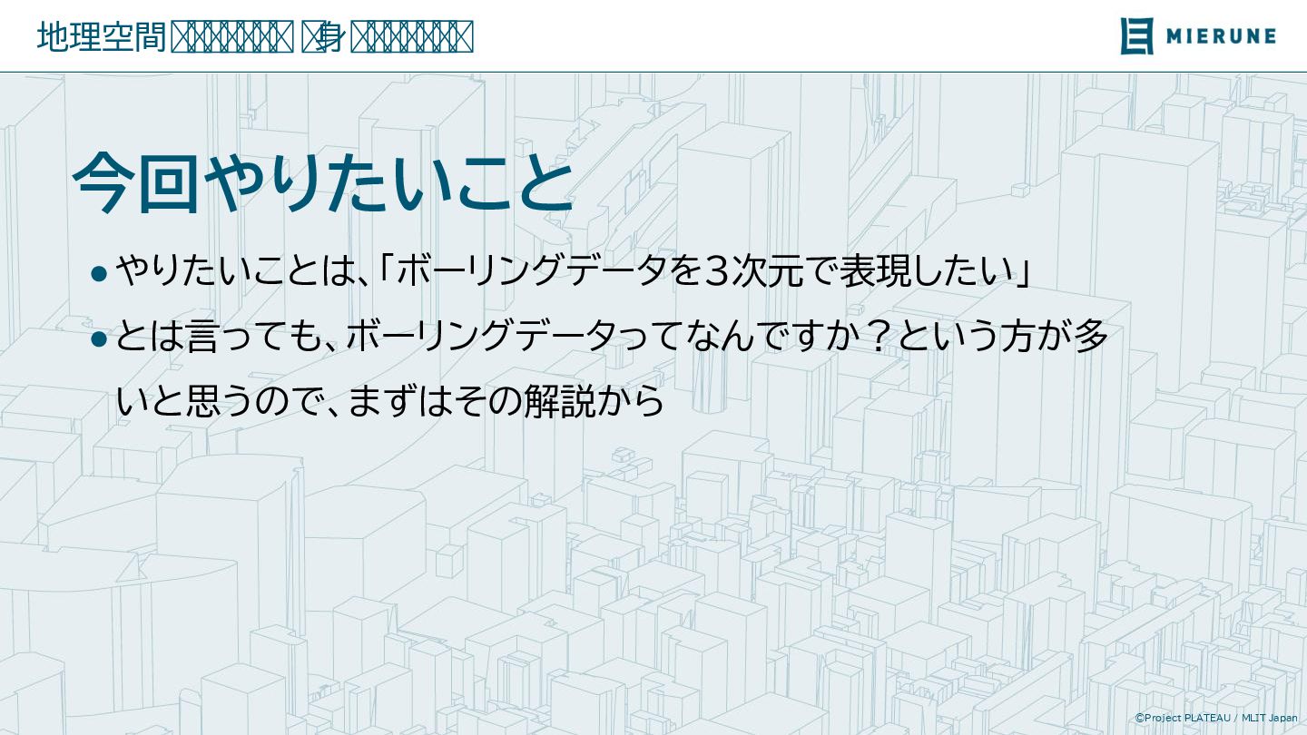 難解... ◦ OGC(Open Geospatial Consortium)が定めている ◦ https://docs.ogc.org/cs/22-025r4/22-025r4.html ◦ 労働でしなしなになっている社会人にはあまりにも厳しい • さらに、検討していくうちに一般的な実装では対応しづらいことが発覚 ◦ 日本全国を一つの3D Tilesで取り扱おうとすると、メタデータのサイ ズが大きくなりすぎる(= ブラウザで扱いづらい) ◦ py3dtilesという著名なライブラリがあるが、それを使うのは難しい いざ、実装