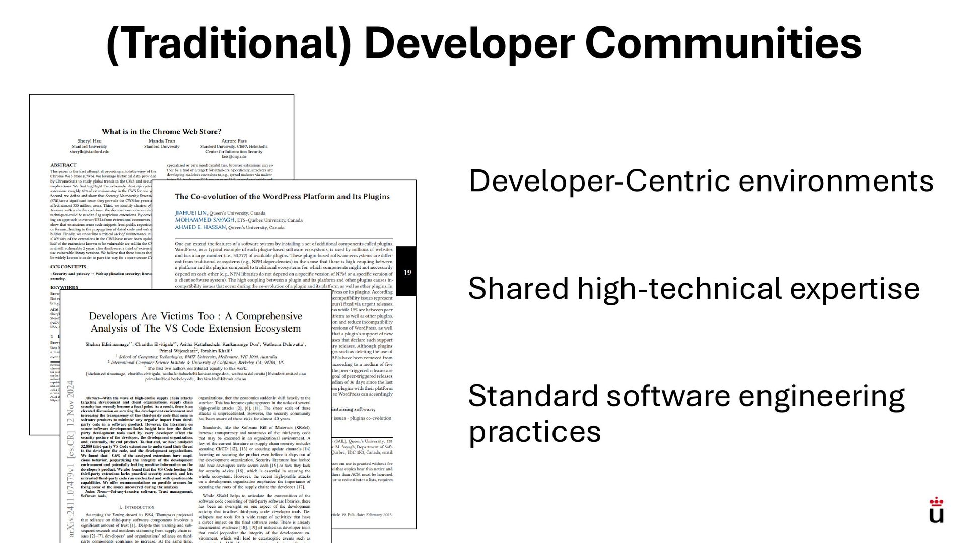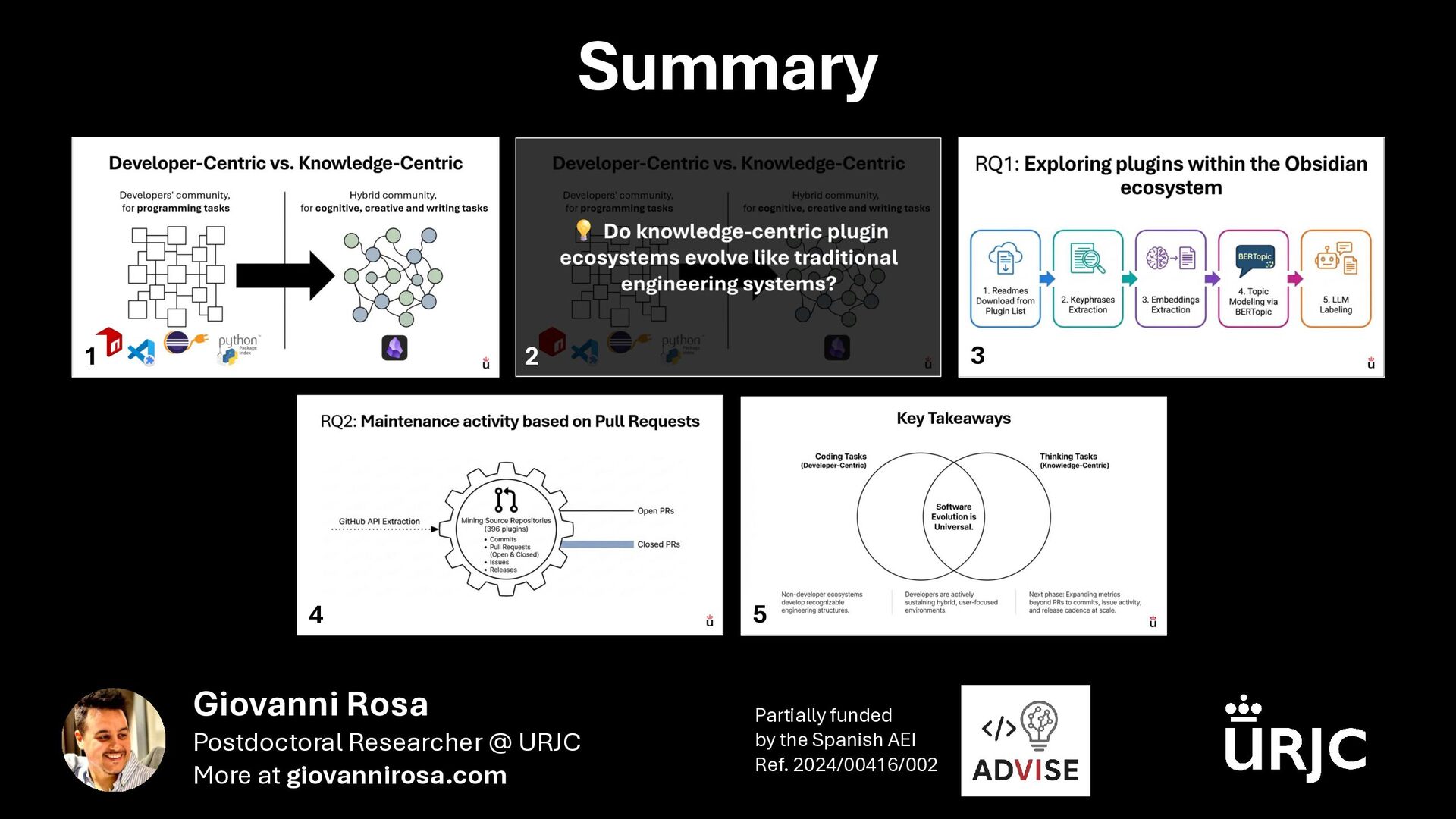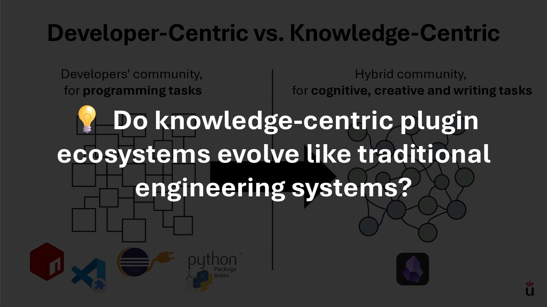Abstract: The adoption of third-party libraries has become integral to modern software development, leading to large ecosystems such as PyPI, NPM, and Maven, where contributors typically share the technical expertise to sustain extensions. In communities that are not exclusively composed of developers, however, maintaining plugin ecosystems can present different challenges. In this early results paper, we study Obsidian, a knowledge-centric platform whose community—focused on writing, organization, and creativity—has built a substantial plugin ecosystem despite not being developer-centric.