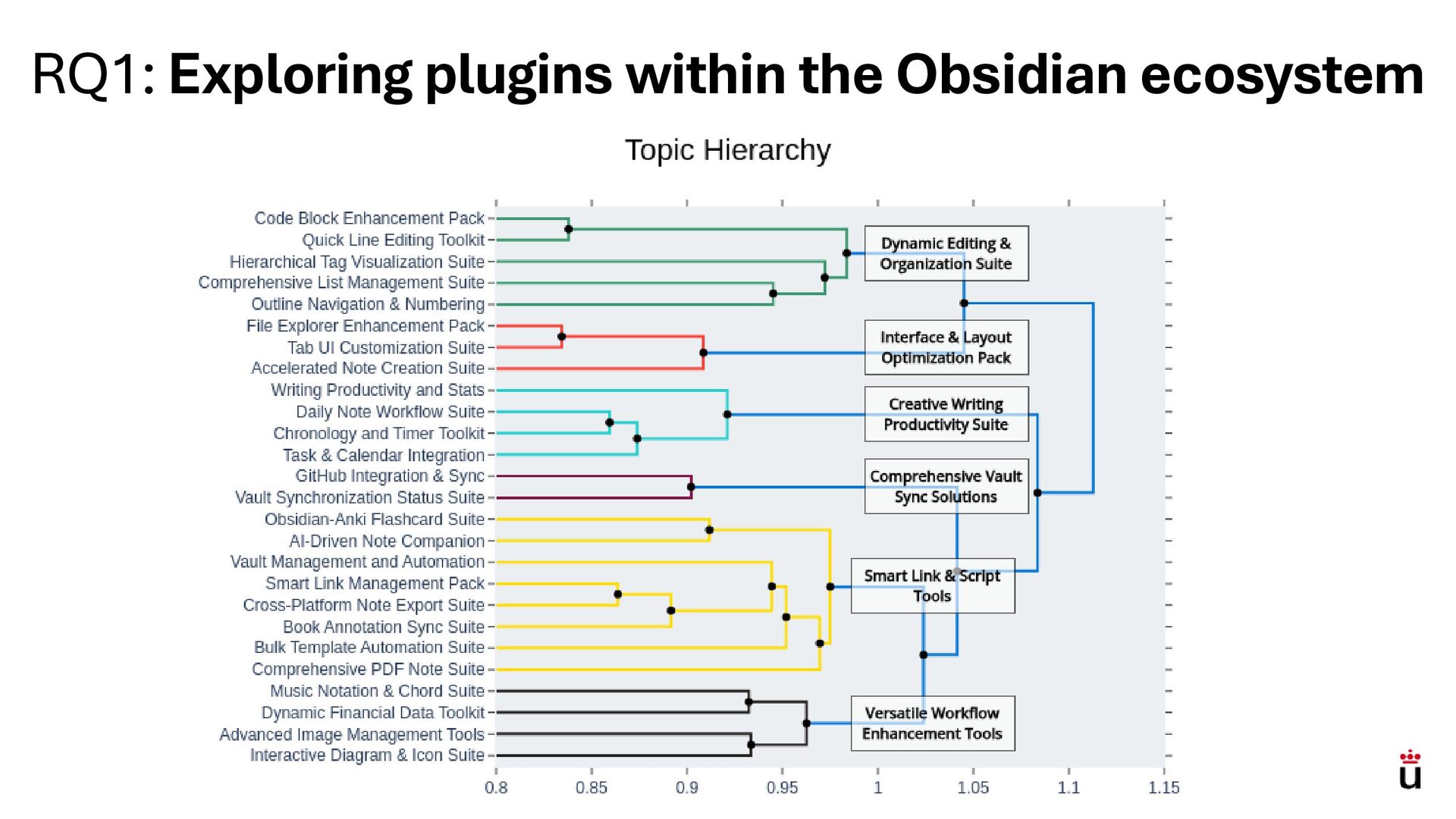 We investigate what kinds of plugins exist within this hybrid ecosystem and establish a foundation for understanding how they are maintained. Using repository mining and LLM-based topic modeling on a representative sample of 396 plugins, we identify six topics related to knowledge management and tooling, which is (i) dynamic editing and organization, (ii) interface and layouts, (iii) creative writing and productivity, (iv) knowledge sync solutions, (v) linking and script tools, and (vi) workflow enhancements tools.