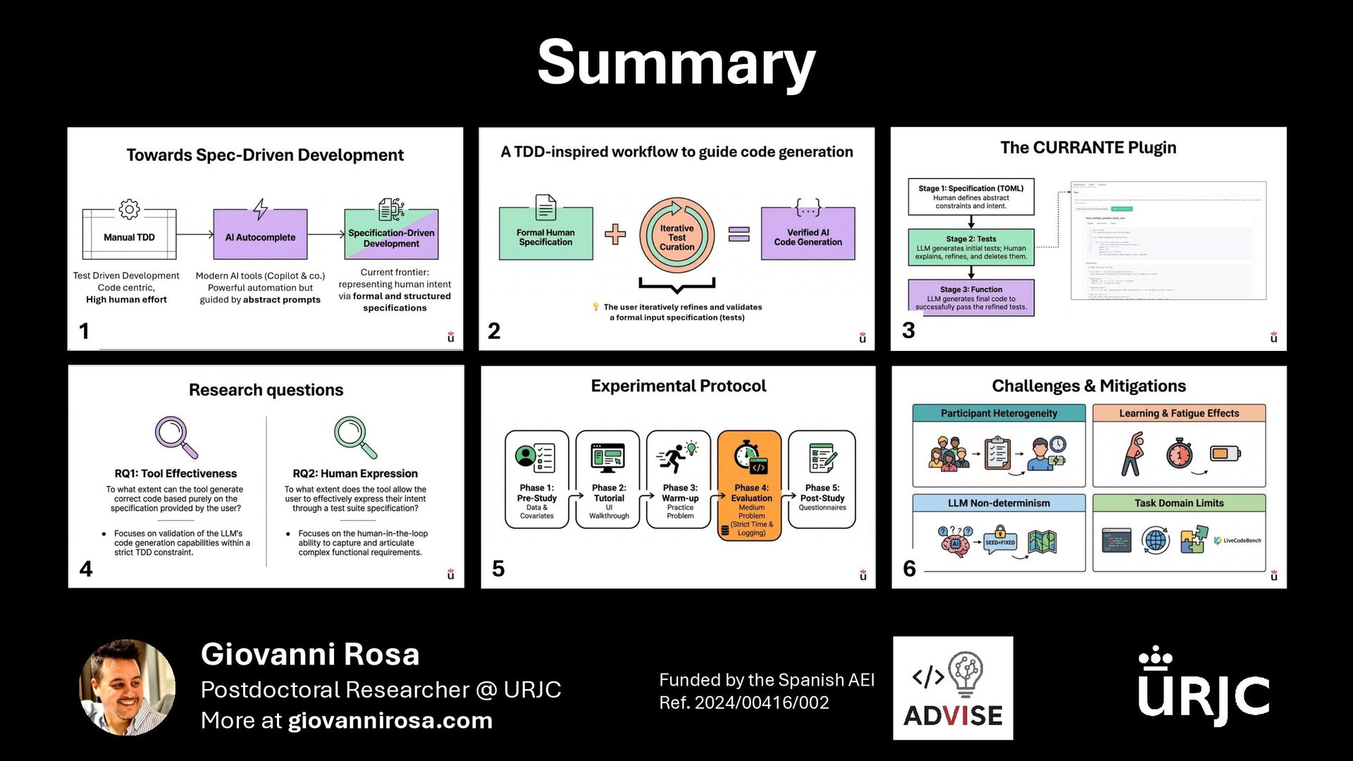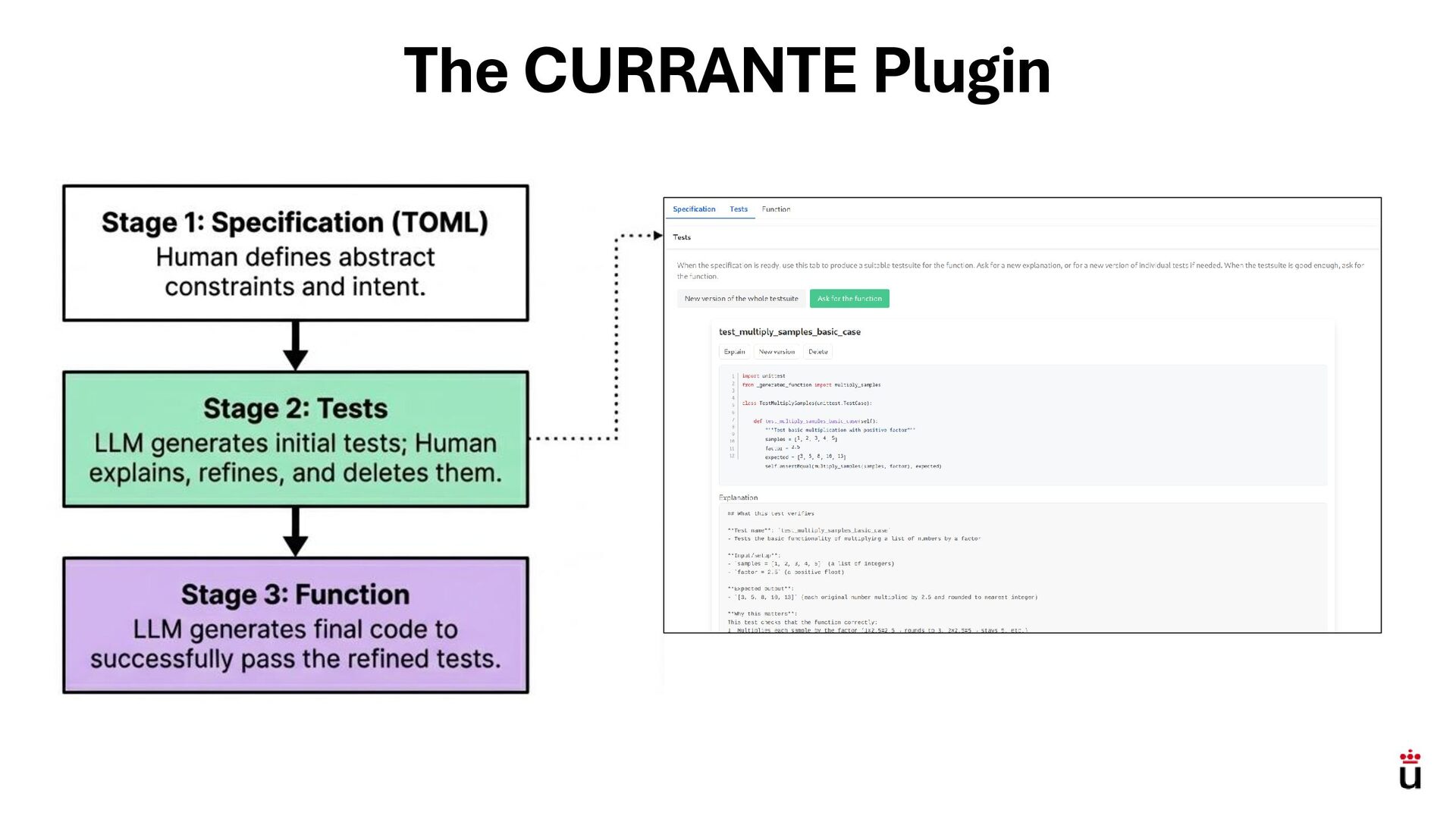 Abstract: Large Language Models (LLMs) are increasingly integrated into software development workflows, yet their behavior in structured, specification-driven processes remains poorly understood. This paper presents an empirical study design using CURRANTE, a Visual Studio Code extension that enables a human-in-the-loop workflow for LLM-assisted code generation. The tool guides developers through three sequential stages--Specification, Tests, and Function--allowing them to define requirements, generate and refine test suites, and produce functions that satisfy those tests. Participants will solve medium-difficulty problems from the LiveCodeBench dataset, while the tool records fine-grained interaction logs, effectiveness metrics (e.g., pass rate, all-pass completion), efficiency indicators (e.g., time-to-pass), and iteration behaviors. The study aims to analyze how human intervention in specification and test refinement influences the quality and dynamics of LLM-generated code. The results will provide empirical insights into the design of next-generation development environments that align human reasoning with model-driven code generation.