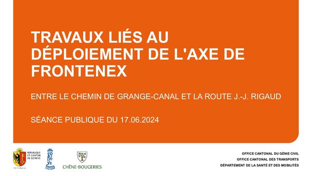 DE LA SANTÉ ET DES MOBILITÉS TRAVAUX LIÉS AU DÉPLOIEMENT DE L'AXE DE FRONTENEX ENTRE LE CHEMIN DE GRANGE-CANAL ET LA ROUTE J.-J. RIGAUD SÉANCE PUBLIQUE DU 17.06.2024
