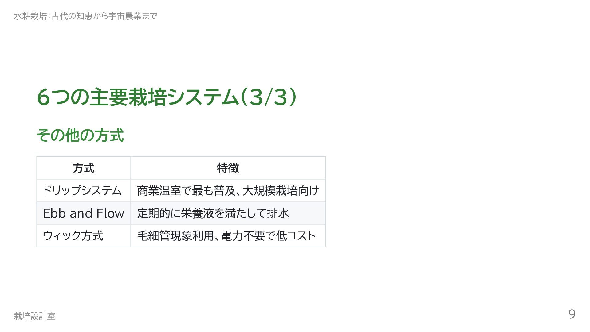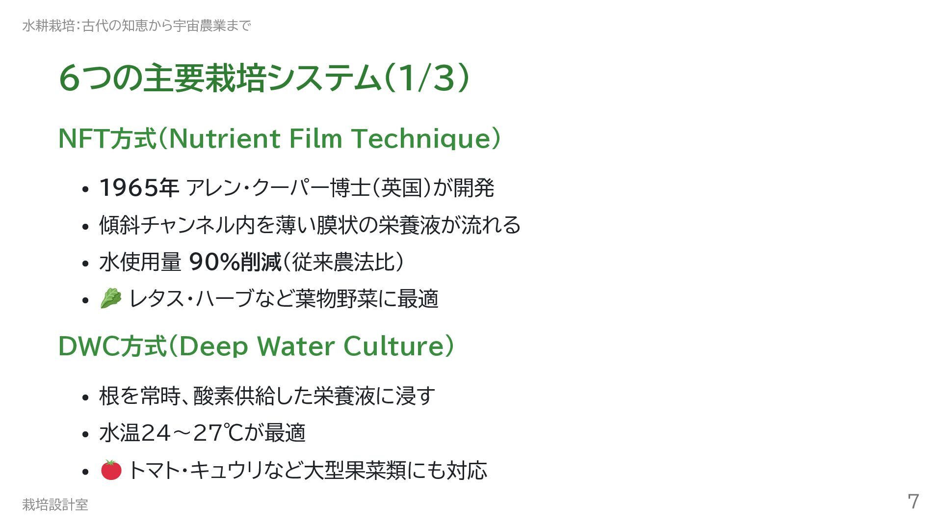 ・NFT・DWC・エアロポニクスなど6つの主要栽培システムの技術比較