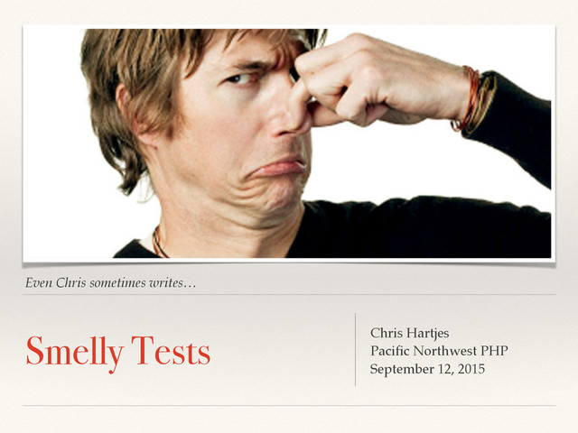 A rapid-fire look at the overall concepts surrounding writing effective unit tests and some tips on how to avoid tests that are as smelly as the code they are trying to protect