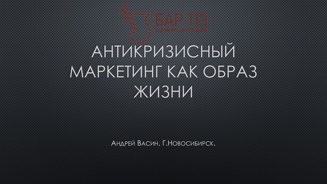 АНТИКРИЗИСНЫЙ МАРКЕТИНГ КАК ОБРАЗ ЖИЗНИ АНДРЕЙ ВАСИН. Г.НОВОСИБИРСК.