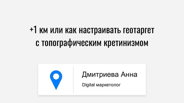 Кейс-поток. +1 км или как настраивать геотаргет с топографическим кретинизмом Анна Дмитриева, Digital-маркетолог