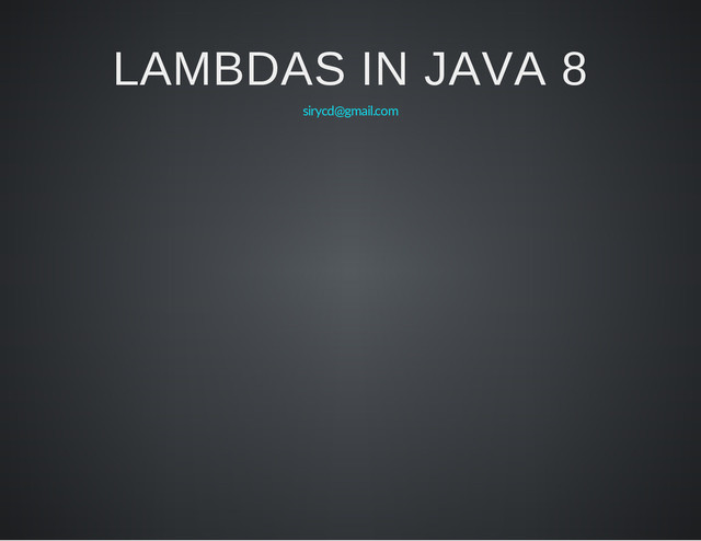 В цій короткій презентації відбудеться спроба пояснити що таке лямбди чому вони такі важливі (або не важливі) і як вони "працюють" в джаві.