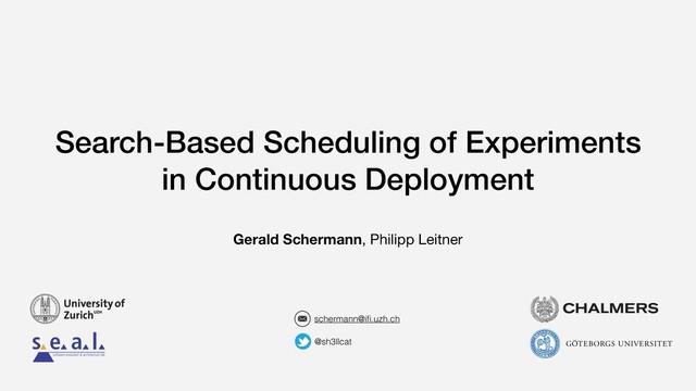 Real-World traffic profile [GitLab*], traffic divided into 5 user groups * https://monitor.gitlab.net/dashboard/db/fleet-overview Variations for required experiment sample sizes (RESS): low [15 million data points] medium [30 million data points] high [55 million data points] 10 baseline experiments [1 to 18 days] 6 regression-driven [2 gradual, 4 constant traffic] 4 business-driven 1 2 3 Duplicated 10 baseline experiments to create sets of 15, 20, 25, …, 70 experiments in 3 variants (low, medium, high RESS) each Parameter calibration GA population size, number of generations, crossover/mutation probabilities, LS/SA number of iterations, … Evaluation on Google Compute Engine 0 100,000 200,000 300,000 400,000 500,000 0 500 1000 Schedule Duration [hours] Traffic [unique requests] Total traffic low RESS medium RESS high RESS Traffic profile for user group 3 and traffic consumption of 3 example schedules (30 experiments each) with low, medium, and high RESS !15