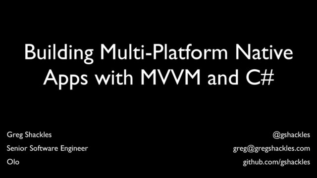 Building Multi-Platform Native Apps with MVVM and C# Greg Shackles