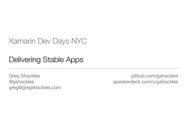 Xamarin Dev Days NYC Delivering Stable Apps Greg Shackles @gshackles