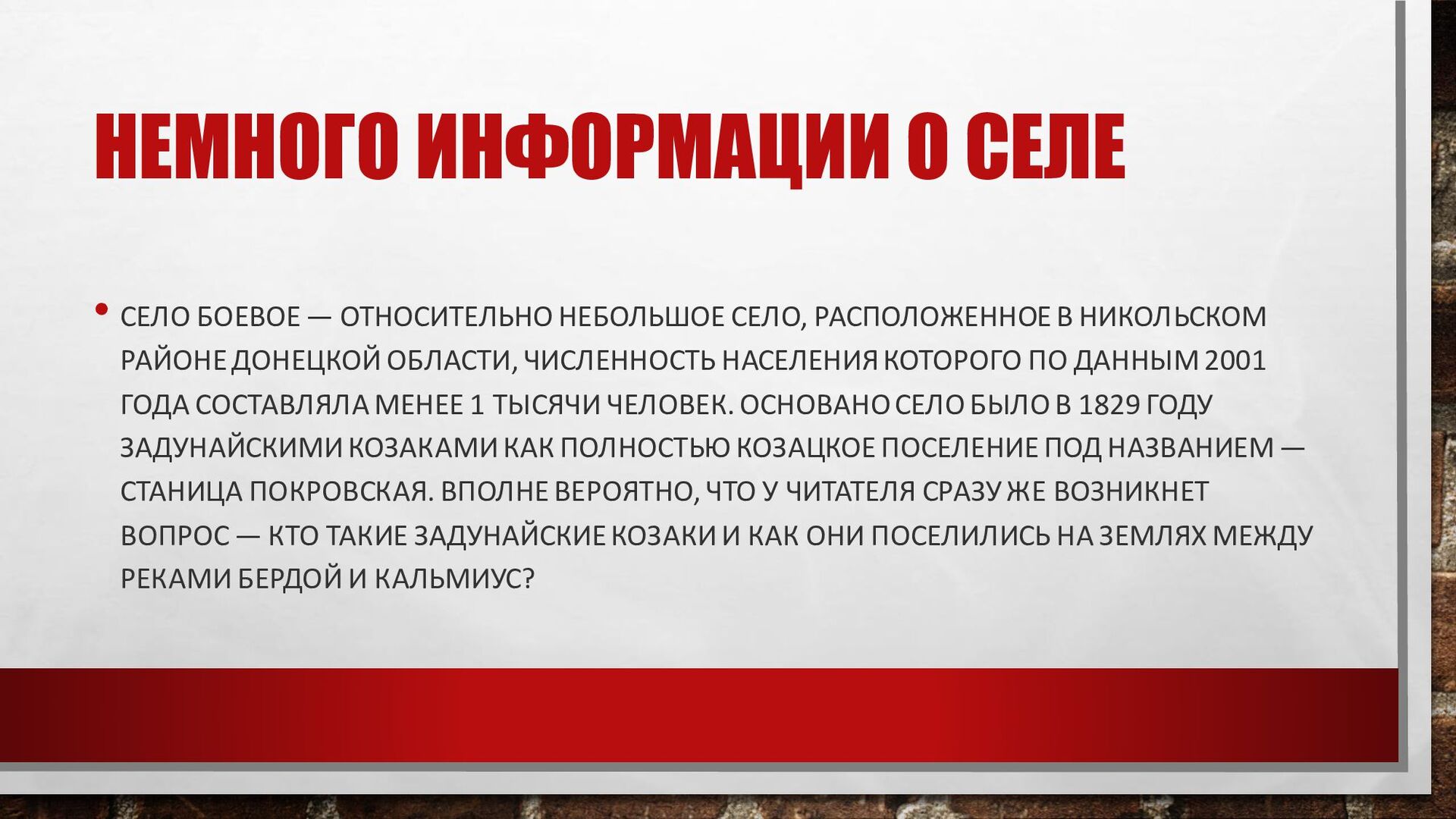 СЕЛО, РАСПОЛОЖЕННОЕ В НИКОЛЬСКОМ РАЙОНЕ ДОНЕЦКОЙ ОБЛАСТИ, ЧИСЛЕННОСТЬ НАСЕЛЕНИЯ КОТОРОГО ПО ДАННЫМ 2001 ГОДА СОСТАВЛЯЛА МЕНЕЕ 1 ТЫСЯЧИ ЧЕЛОВЕК. ОСНОВАНО СЕЛО БЫЛО В 1829 ГОДУ ЗАДУНАЙСКИМИ КОЗАКАМИ КАК ПОЛНОСТЬЮ КОЗАЦКОЕ ПОСЕЛЕНИЕ ПОД НАЗВАНИЕМ — СТАНИЦА ПОКРОВСКАЯ. ВПОЛНЕ ВЕРОЯТНО, ЧТО У ЧИТАТЕЛЯ СРАЗУ ЖЕ ВОЗНИКНЕТ ВОПРОС — КТО ТАКИЕ ЗАДУНАЙСКИЕ КОЗАКИ И КАК ОНИ ПОСЕЛИЛИСЬ НА ЗЕМЛЯХ МЕЖДУ РЕКАМИ БЕРДОЙ И КАЛЬМИУС?