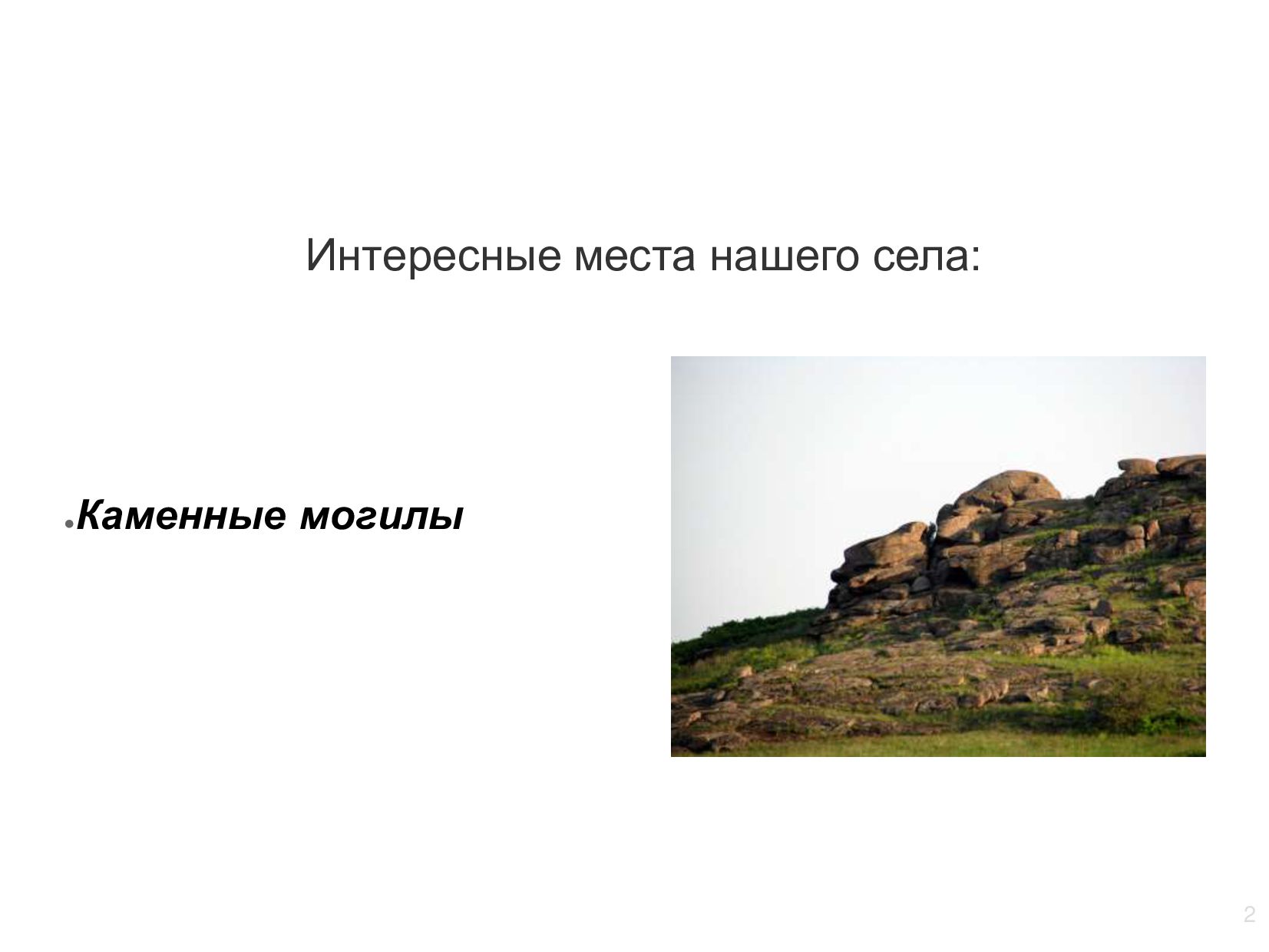 2 Интересные места нашего села: • Каменные могилы