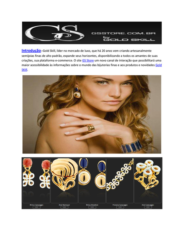 anos vem criando artesanalmente semijoias finas de alto padrão, expande seus horizontes, disponibilizando a todos os amantes de suas criações, sua plataforma e-commerce. O site GS Store um novo canal de interação que possibilitará uma maior acessibilidade às informações sobre o mundo das bijuterias finas e aos produtos e novidades Gold SKill.