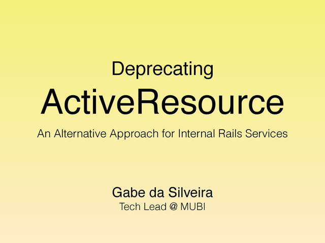 MUBI has a long and bumpy history with ActiveResource, which eventually led to enough pain to migrate away. This talk explores the why and the how of this ongoing transition.