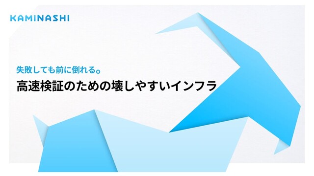 スタートアップは数ある仮説の中からどれが成功するかわかりません。失敗と成功の検証サイクルを高速で回し、事業に経験を蓄積していく必要があります。また失敗してもただでは転ばない、失敗しても前に倒れることが重要です。 カミナシではこれまで様々なインフラの失敗を繰り返し、前に倒れてきました。失敗した反省を元に壊してつくりなおす。壊しやすいインフラも大事にしてきました。 今回はそんなカミナシがどのようなインフラの課題を乗り越えてきたのかお話します。
