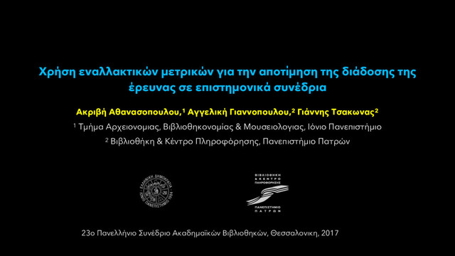 Εργασία στο 23ο Πανελλήνιο Συνέδριο Ακαδημαϊκών Βιβλιοθηκών.