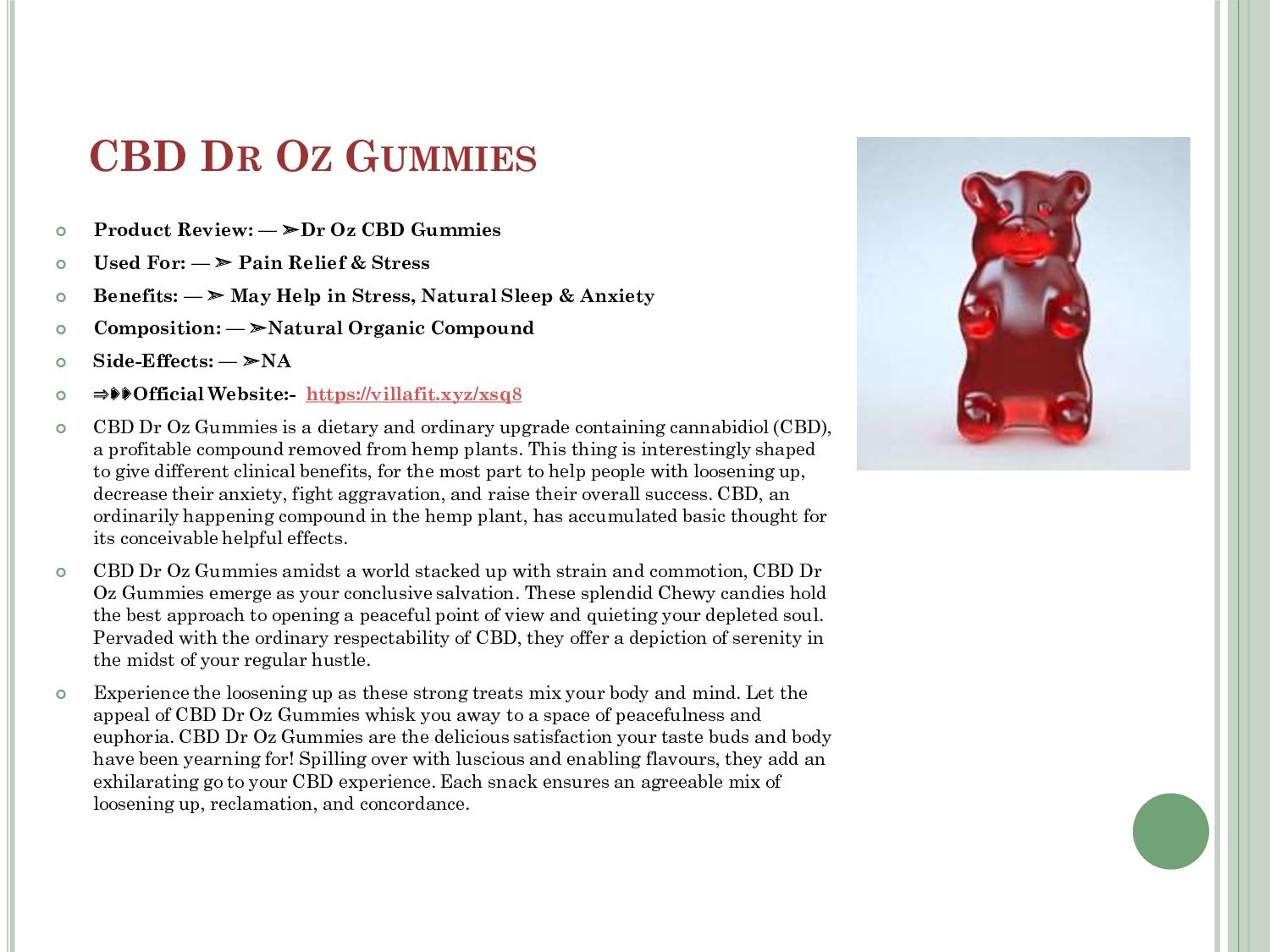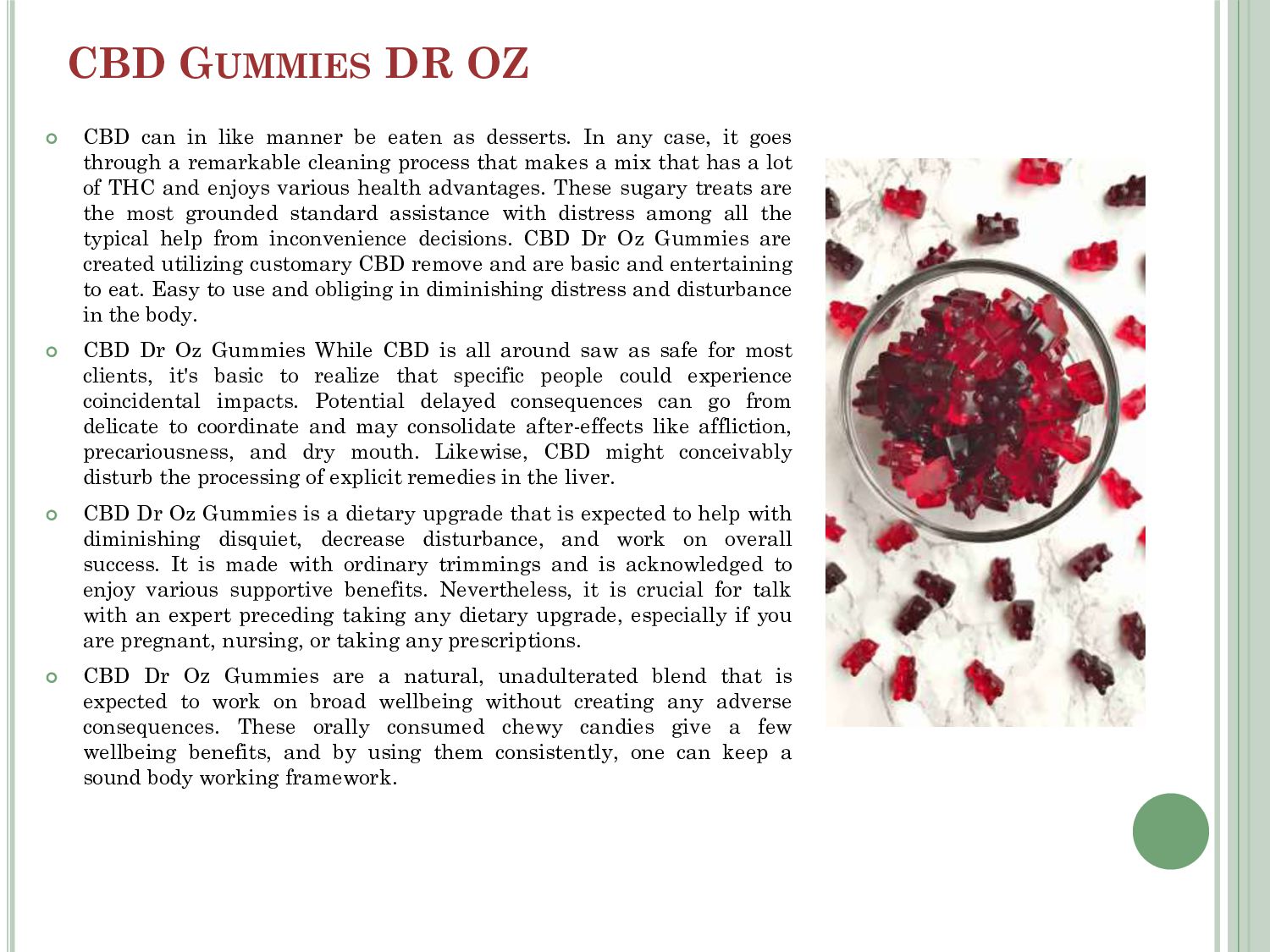 CBD Dr Oz Gummies amidst a world stacked up with strain and commotion, CBD Dr Oz Gummies emerge as your conclusive salvation. These splendid Chewy candies hold the best approach to opening a peaceful point of view and quieting your depleted soul. Pervaded with the ordinary respectability of CBD, they offer a depiction of serenity in the midst of your regular hustle.