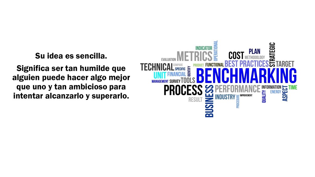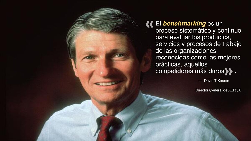 los productos, servicios y procesos de trabajo de las organizaciones reconocidas como las mejores prácticas, aquellos competidores más duros . « » — David T Kearns Director General de XEROX