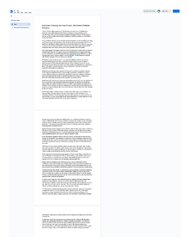 In conclusion, apartment cleaning services in Omaha provide residents with affordable, reliable, and customizable solutions to maintain a spotless living space. From move-out cleans and vacation rental turnovers to regular weekly maintenance and seasonal deep cleans, these services cater to a wide variety of needs. With trained professionals, eco-friendly products, and flexible scheduling, Omaha’s cleaning companies make it easier than ever to enjoy a clean, comfortable home without the stress of doing it all yourself.