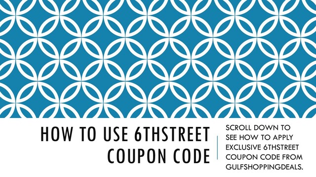 6th Street Coupons at Gulfshoppingdeals.com will help you in saving up to 90% on your shopping for clothing, accessories, bags, jewellery and beauty products. Shop online for your favorites brands around the globe with the latest Discount Coupons & Promo Codes of 6th Street.