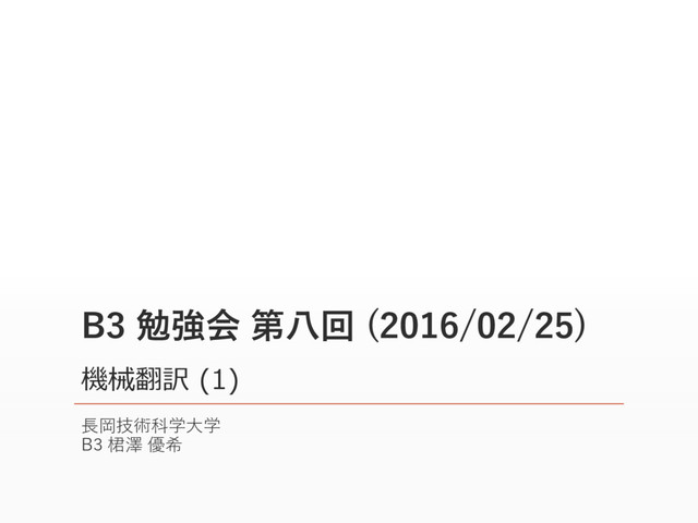 B3 勉強会 第八回 (2016/02/25) 長岡技術科学大学 B3 桾澤 優希 機械翻訳 (1)