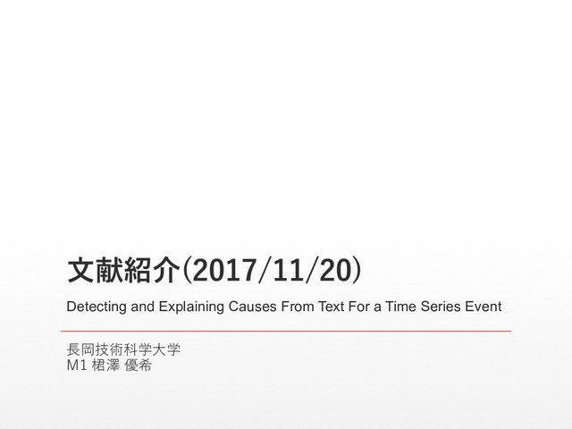 Zheng Chen, Eduard Hovy ▪ Detecting and Explaining Causes From Text For a Time Series Event ▪ Proceedings of EMNLP 2017, Conference on Empirical Methods in Natural Language Processing ▪ pp. 2758–2767 ▪ キーワード ▪ テキスト生成 2